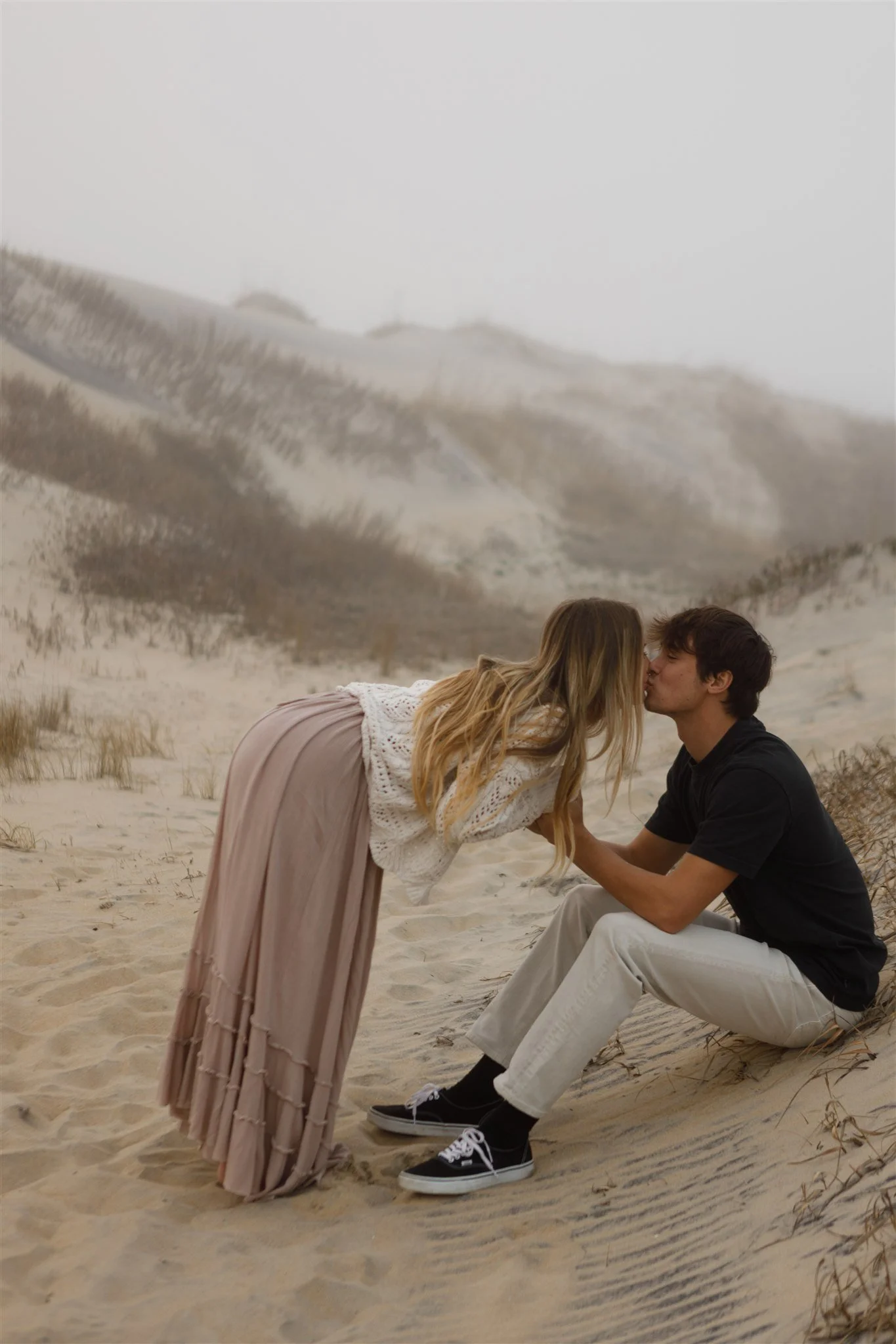 The dunes are also one of my favorite locations for couples because they feel both expansive and intimate at the same time. The textures of the sand and grasses add depth and movement to each image, while the quiet surroundings allow couples to relax and truly be present with each other.